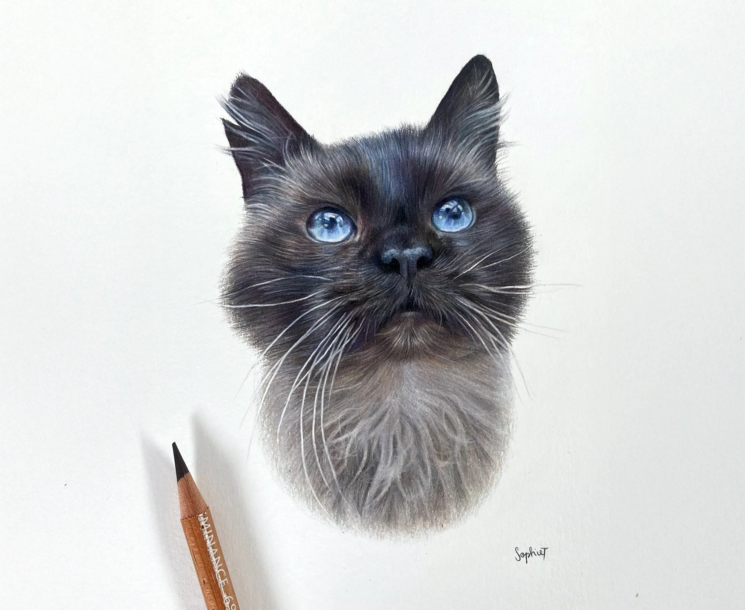 Cats have inspired poetry, art, riddles, and countless tales, and I love that my own work as a pet portrait artist lets me contribute to this long tradition of cat creativity. The picture above is one I completed recently. I really loved drawing it’s beautiful blue eyes! If you’d like me to draw amazingly detailed portrait of your own endearing, enigmatic and enchanting feline friend, then do please get in touch!