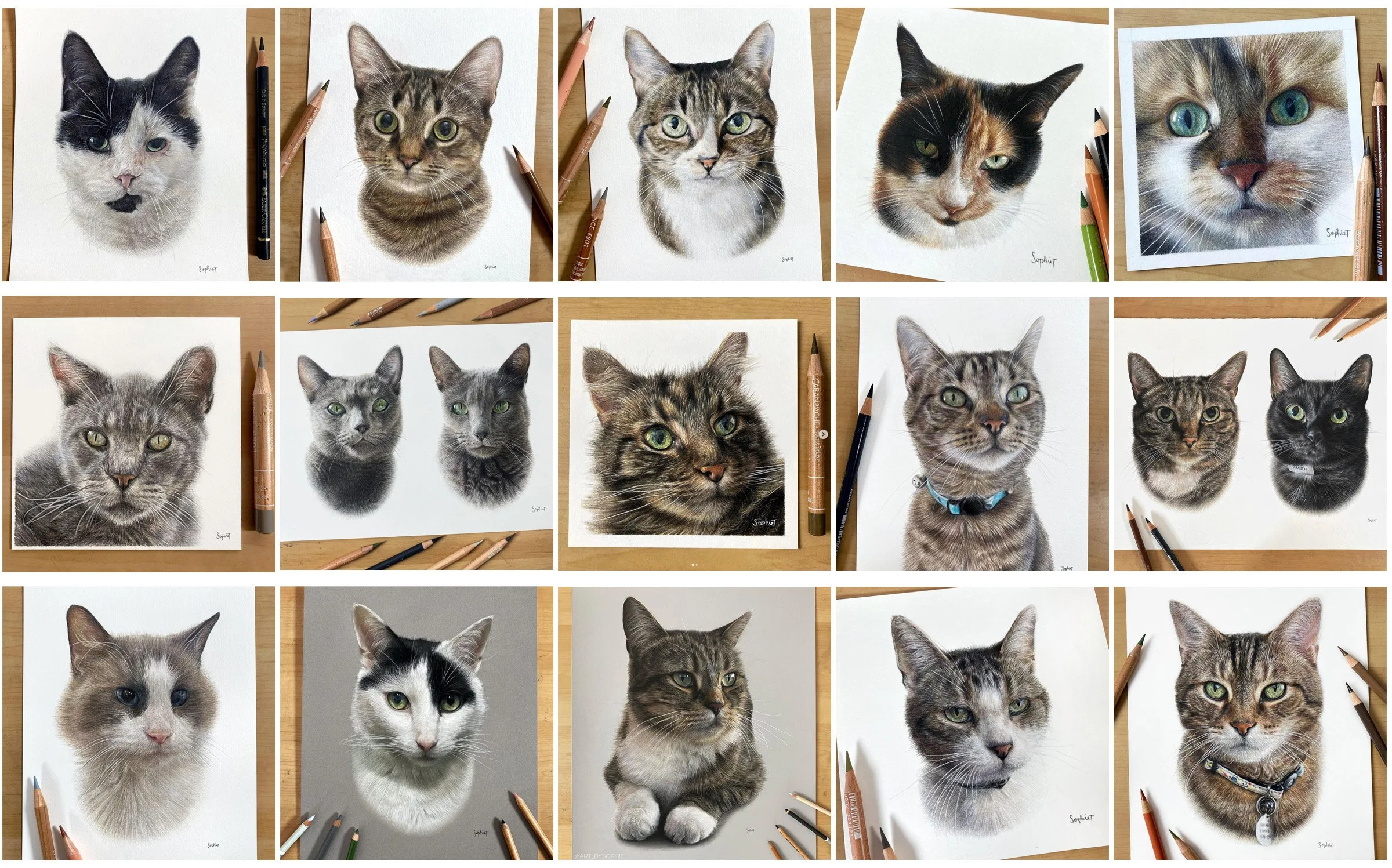 I hope you’ve enjoyed these incredible cat facts! One more fact. I’ve drawn 56 cat commissions since starting my pet portrait business and you can see some of them above. I really love drawing cats so if you would like me to create a stunningly detailed drawing of your fascinating feline, then do please do get in touch.